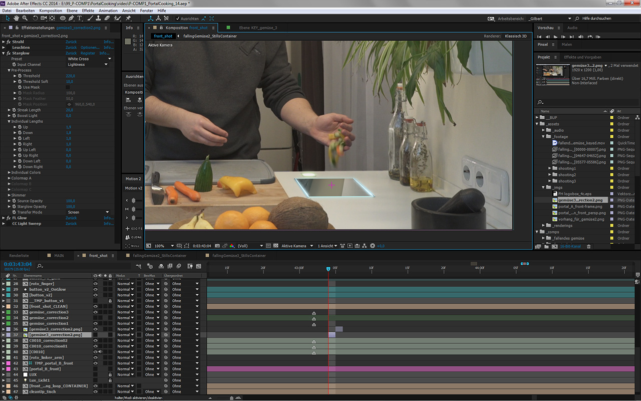 This fun little project was created during my master's course for post-production. It shows a cook at work who conveniently transfers fresh cut vegetables into a cooking pot behind him via a small portal.. ;-) The 2nd half of the clip shows a breakdown of how scenes were done.
